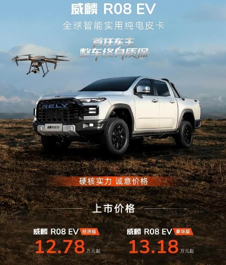 听说有纯电皮卡,他心动了,但又犯嘀咕:“那玩意拉得动货吗?冬天掉电快不快?别半路撂挑子,耽误我送货。”直到他刷到了刚上市的奇瑞 威麟R08 EV(参数|询价),12.78万的起售价让他眼前一亮,但疑虑仍在。今天咱们就聊聊,这台“电皮卡”能不能成为老陈们生意升级的“新伙计”。