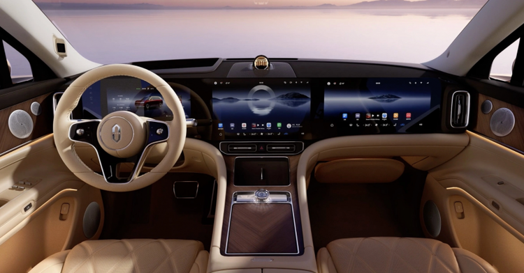 ③豪华体验:内饰标配Nappa真皮舒云座椅,十层堆叠设计搭配双绗缝工艺,后排配备零重力+准零重力座椅组合,腰部零压角121°、腿部零压角136°,支持"一键双享"模式。25单元HUAWEI SOUND卓越系列音响,配合施罗德声学散射技术,实现殿堂级声学体验,1680万色氛围灯与光随影动功能提升沉浸感。全车采用低气味环保材料,配备全链路空气净化系统,15分钟细菌病毒去除率>99%。同时,问界M9提供零重力座椅享受,腰部与腿部零压角设计有效分散压力,缓解久坐疲劳;配备智能隐私玻璃,支持多级调光,遮光率与紫外线阻隔率均大于99%,为乘客营造私密、舒适的专属空间。