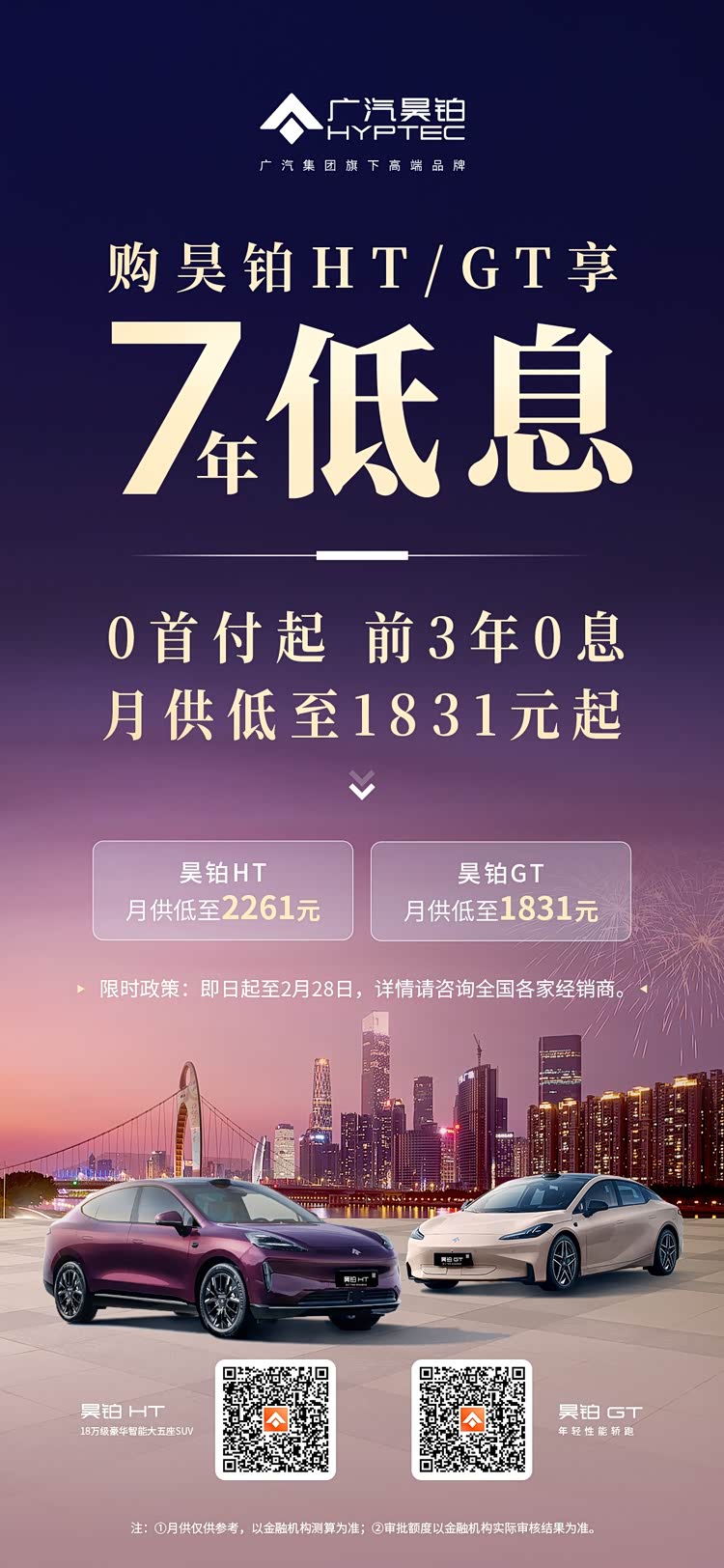 广汽昊铂HT/GT推出7年低息方案,0首付起,月供低至1831元起