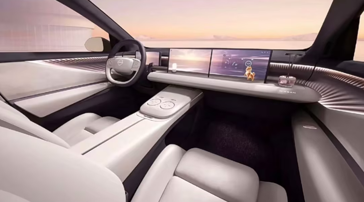 在外观上,我们经常能够看到日产NX8紫色的实车,这次下线的001号车也是一款紫色版本,很显然它这是把紫色当做是主色调了,外观的表现不一般。在设计语言方面,日产NX8采用的是极简化的效果,它的前脸有不少家族化的痕迹的,只是被电感覆盖了,新车采用的是贯穿式的日行灯的设计,它的主灯采用了回旋镖的样式,前脸的中间大部分的位置都采用了封闭式的轮廓,并且很垂直化,新车的底部是一个很柔和的高亮黑色的包围,它还有运动化的前铲。
