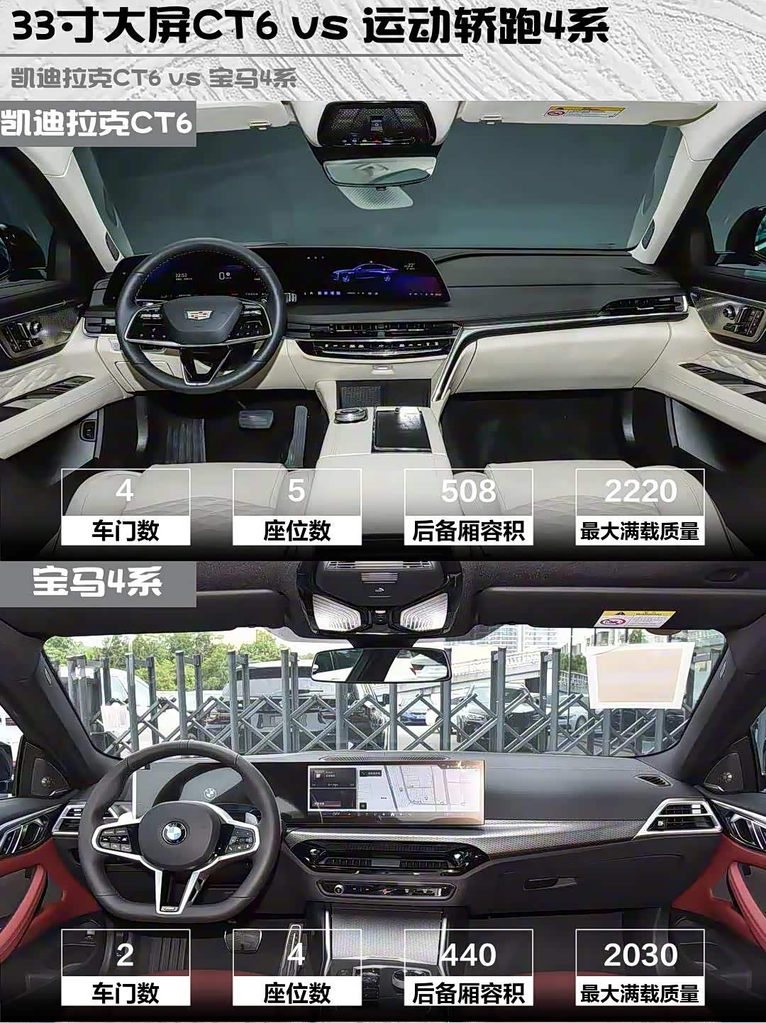 CT6后排能跷二郎腿,但中央地台隆起堪比SUV;宝马4系掀背尾门装滑雪板方便,但后排坐175cm以上会顶头。实测CT6后备箱能塞3个28寸行李箱,宝马只能放2个+登机箱。要商务接待选CT6,小两口浪漫选4系没毛病💑
