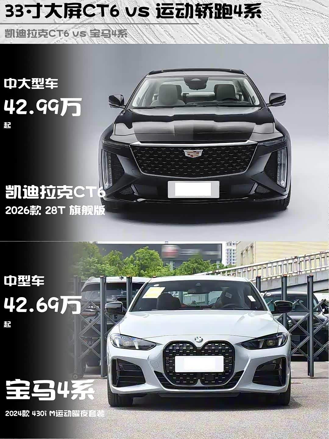 最近后台好多人在问:40万预算, 凯迪拉克CT6(参数|询价) 2026款 28T 旗舰版和宝马4系 2024款 430i M运动曜夜套装到底怎么选?今天直接上干货,从真实车主视角拆解这对美式豪华VS德系运动的王炸组合🔥