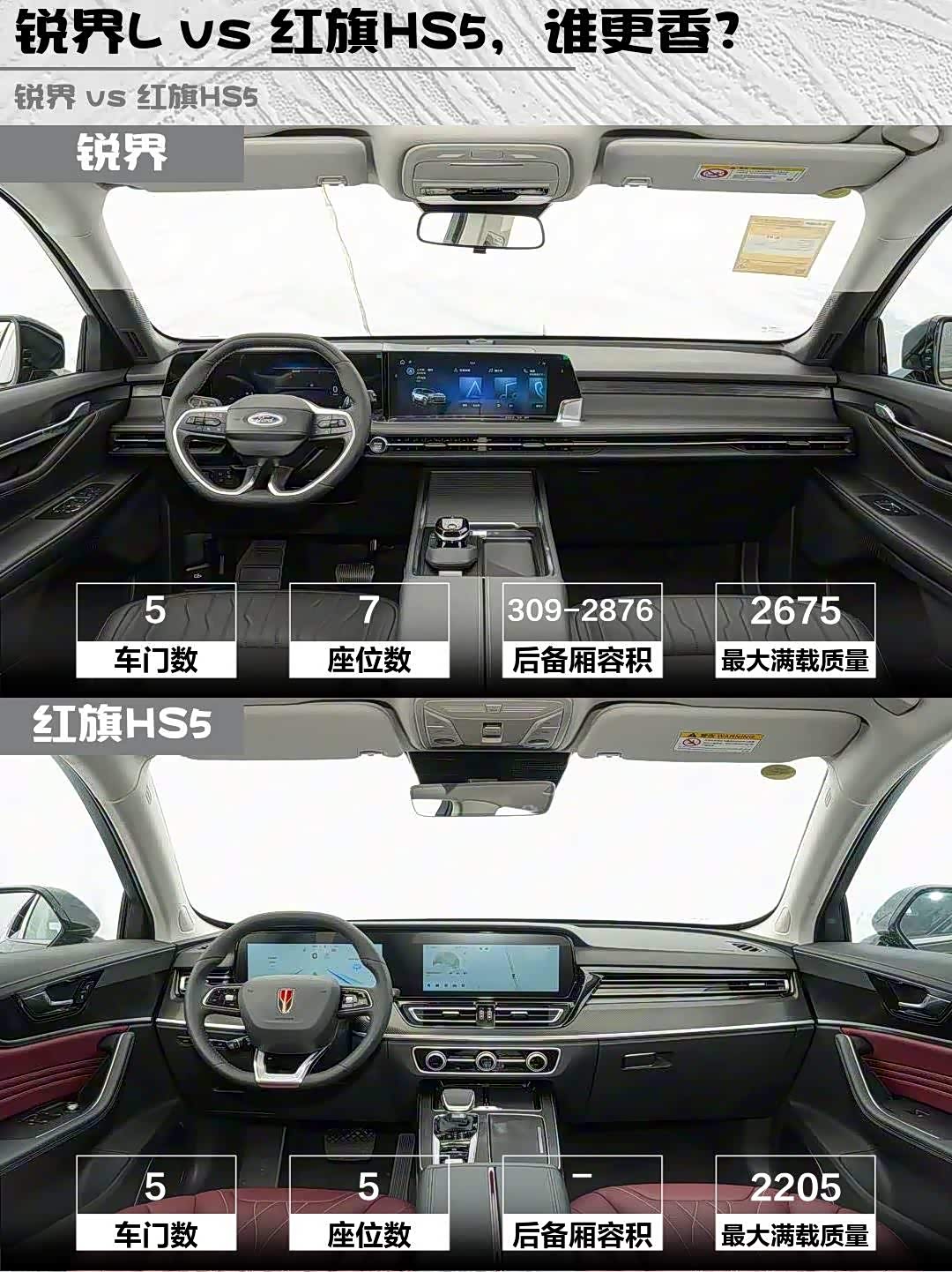 锐界L的5000mm车长+223七座布局简直是二胎家庭刚需!实测三排坐175cm成人膝盖还有一拳,放倒后直接变身2米2大床房🛏️。红旗HS5虽然只有五座,但后排腿部空间居然比锐界L还多两指,翻毛皮座椅坐垫加长3cm,长途更舒服。不过要论实用性,能装下全家老小的锐界L确实更香~