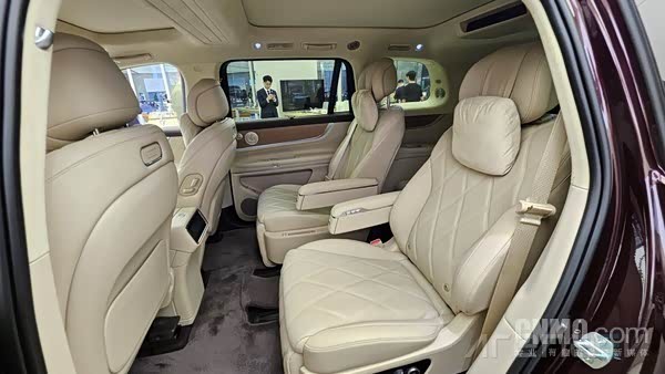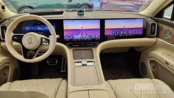 问界M9车内配备一个12.3英寸仪表盘、一个15.6英寸中控屏以及一个16英寸的后排娱乐屏,如此丰富的屏幕与最新款的奔驰Hyperscreen不相上下。