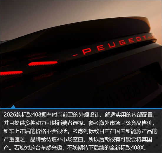 不论在建筑、服装,亦或是汽车领域,法国人总能带来最猎奇的设计,他们习惯将天马行空的想象融入现实生活,展示出具有浪漫主义色彩的审美绝学。在前不久举办的比利时布鲁塞尔国际车展上,2026款标致408正式亮相,以新潮外观成为全新的时尚引领者,那么新车都有哪些亮点?本期《新车图解》将为您详细解读。