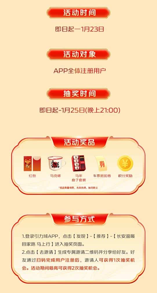 为构建全天候、多渠道的服务体系,长安汽车同步开启长安“引力域”APP线上温暖平台。返乡人员可参与APP内“长安温暖回家路 马上行”抽奖赢好礼,现场扫码注册更可解锁专属权益,实现线上线下温暖相伴。