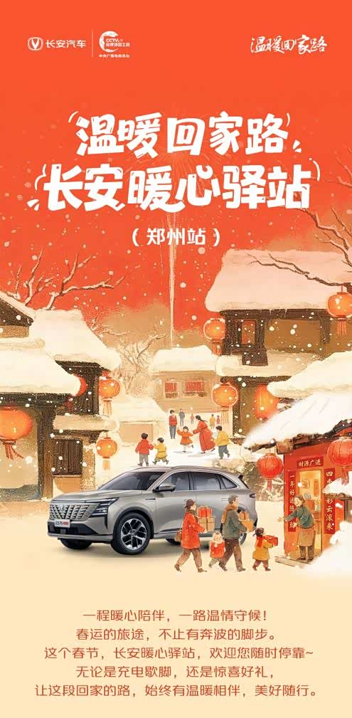 1月24日,伴随2026年春运正式拉开帷幕,长安汽车“温暖回家路·长安暖心驿站”在郑州客运北站温情启程。这是长安汽车连续第七年开展此项暖心服务活动,七年如一日的坚守不仅彰显了企业的社会责任,更传递出民族品牌服务民生的温暖担当。