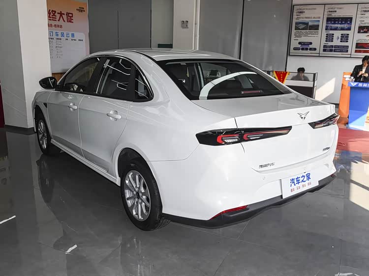 再来看车身侧面部分,轩度EV采用了流畅平直的线条设计,上扬的腰线从前翼子板延伸至车尾,赋予整车一定的动感气息。车身尺寸为4724/1825/1532mm,轴距达到2700mm,这样的尺寸在紧凑型轿车中属于中等偏上水平,为车内宽敞的空间奠定了基础。车窗线条流畅,与车身轮廓相得益彰,整体视觉协调。虽然没有采用隐藏式门把手和低风阻轮毂等新能源车常见的设计元素,但轩度EV的车身比例依然保持了良好的平衡感。