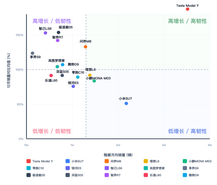 其次,单一爆款策略风险升高,“健康产品矩阵”成为品牌压舱石。 无论是蔚来通过乐道品牌开拓第二曲线,小鹏凭借MONA M03实现规模跃升,还是理想向纯电拓展产品边界,都说明将命运系于单一爆款车型是危险的。构建一个梯次分明、覆盖不同价格带和细分人群的产品矩阵,才能有效对冲风险,增强整体抗风险能力。
