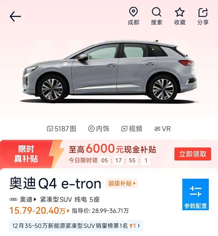 28.99-36.71 万的奥迪 Q4 e-tron ,如今 15.79 万元起;