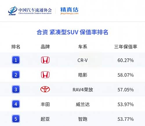 合资品牌紧凑型SUV保值率排名