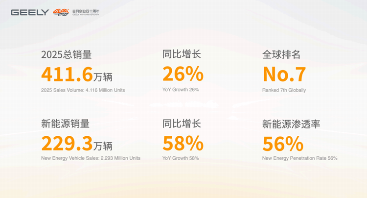 当然,对于吉利控股这样的企业来说,提出具体的销量目标、锁定未来预期的增速只是第一步,如何将其落实到实际的操作中并兑现承诺至关重要。站在2026年创业四十周年的门槛上,吉利面对的是电动化与智能化交织的产业深水区,以及全球化规则重塑的复杂局势。