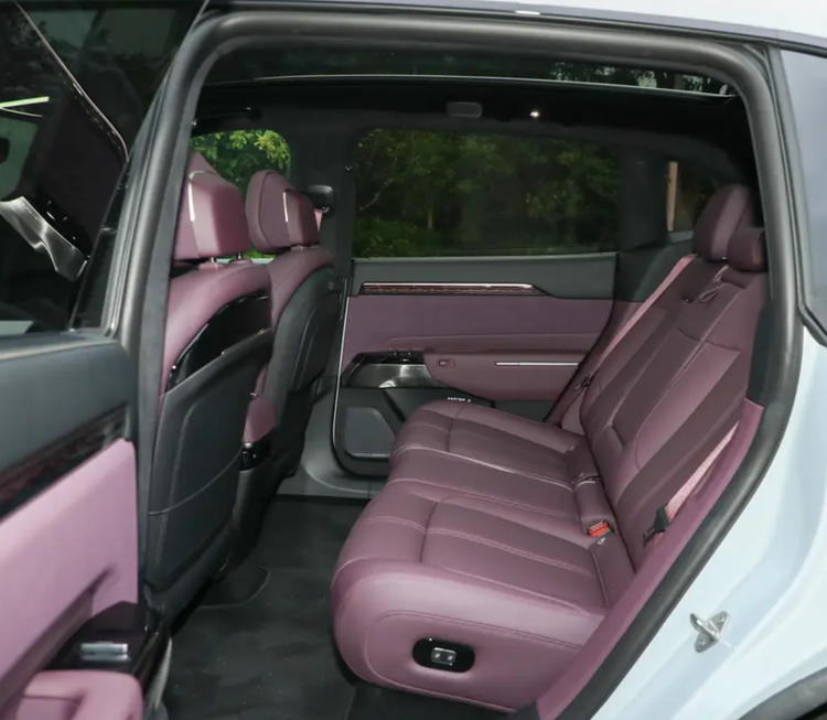 不过ZEEKR 7X也是配有双层隔音玻璃、配有前后独立选装,在冰雪路面上的表现也不错,轮胎的抓地力挺强的。而且它后排也带有电动调节功能,后排座椅可以大角度向后调节,因此也保证乘客有足够头部空间,甚至长途乘坐也是半躺着的姿态,小腿也有近两拳的空间。小桌板想要选配,全景不可开启天窗是标配的,内置有氛围灯和一键开门方式,16英寸的中控屏支持HUAWEI HiCar和5G网络,什么无线充、前后充电接口这些都有。重点是它的后备厢非常大,达到905L的标准容量,如果把后排座椅放倒,可以扩展到1978L的大容量,铺上气垫床堪比2米大床了。