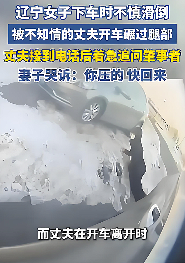 1月25日,辽宁发生一起交通事故;一名女子从车上走下的时候,因为路面冰雪湿滑而不慎摔倒;摔倒的时候把腿无意间伸到底盘下方,而司机并没有发现异常,随后直接开走,关键是压过腿之后也没有发现异常。