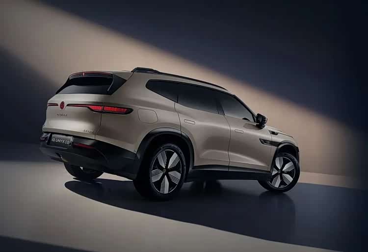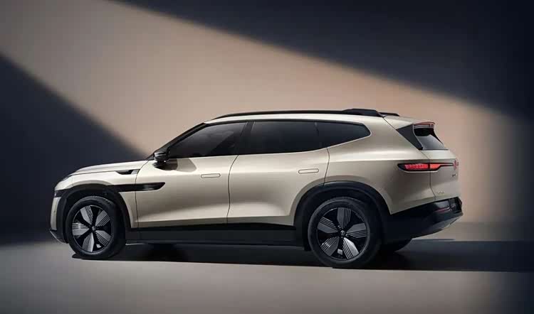 新车外观配有无框车门、隐藏式门把手、21 英寸轮毂与金色卡钳等新能源车年轻化配置,整体风格较为简洁前卫。