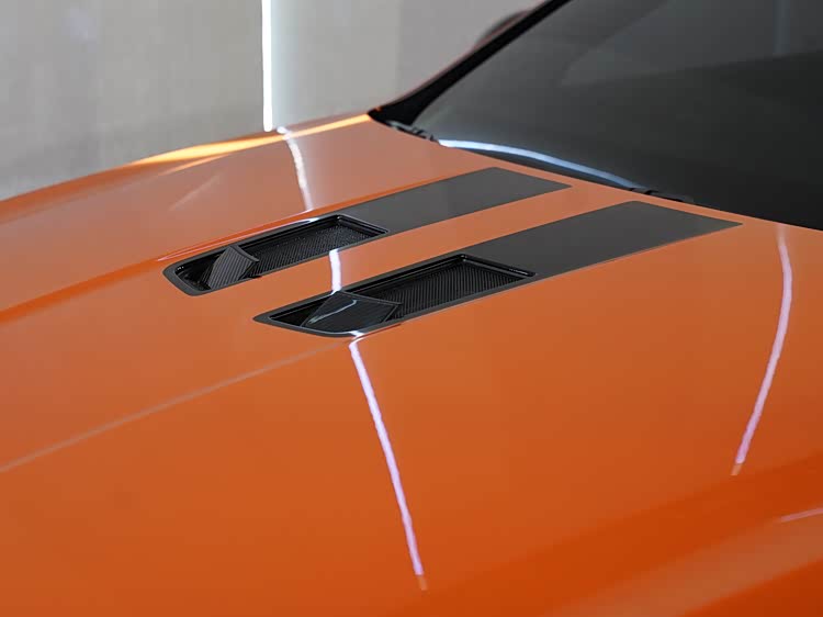 车辆尾部同样围绕高速稳定性展开设计。碳纤维扰流板与尾部扩散器共同作用,在不明显牺牲风阻系数的前提下,为车尾提供必要的下压力支持。双边共两出的排气布局并未刻意强调声浪外放,而是与整体性能定位保持一致。反弓形尾部线条让车尾在视觉上更具力量感,同时拉低了重心感知高度。这种设计在高速行驶时,有助于驾驶者对车辆姿态建立更稳定的心理预期,也提升了整车在高速巡航状态下的辨识度。