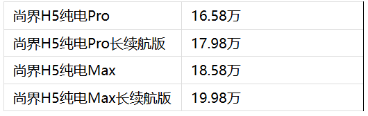 (1)尚界H5纯电版——华为技术加持的20万级纯电价值标杆