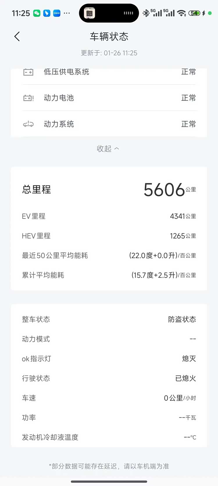 提车到现在已经开了5600多公里,其中4300多公里是纯电模式。相比而言用电更便宜,平时通勤或去镇上就用纯电模式,上高速后车子有智能油电模式,会自己调整用油和用电的比例。