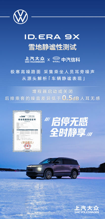 极寒严冬,向来是检验汽车性能、操控和可靠性的终极试炼场。ID. ERA 9X穿越冰雪,不仅依托强劲“动力心脏”——EA211发动机打造的“黄金增程系统”,展现卓越性能,告别低温束缚,更以静谧车内氛围诠释舒适出行,实现动力与静音的双重突破,破局增程痛点。