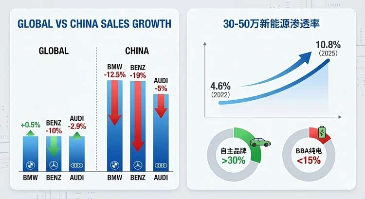 2018年,30-50万价格带,BBA的市占率接近60%。2025年,不到30%。