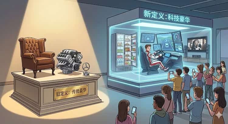 2018年的答案:真皮座椅、V6发动机、百年品牌背书。2025年的答案:零百加速3秒、高阶智驾、冰箱彩电大沙发。