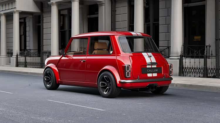 细节部分,还有加宽的Wood & Pickett轮眉、LED大灯和尾灯,以及原厂轮毂被Callum设计的四辐轮毂取代,直径同样为13英寸,以此打造出和谐的整体外观。此外,特制的无烟煤金属漆面,更赋予了这款经典MINI精致的格调。