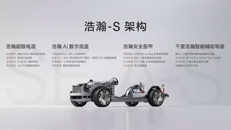 这“溢出”第一眼是气场。超5.2米车长、近3.2米轴距的庞然体量,配合方正恢弘的线条,被网友称为“杭州湾库里南”。但它的内核绝非复古奢华,而是数字时代的性能巨兽。全栈900V高压混动架构、三电机兆瓦电驱系统,综合马力超1400匹,顶配零百加速仅3.1秒。