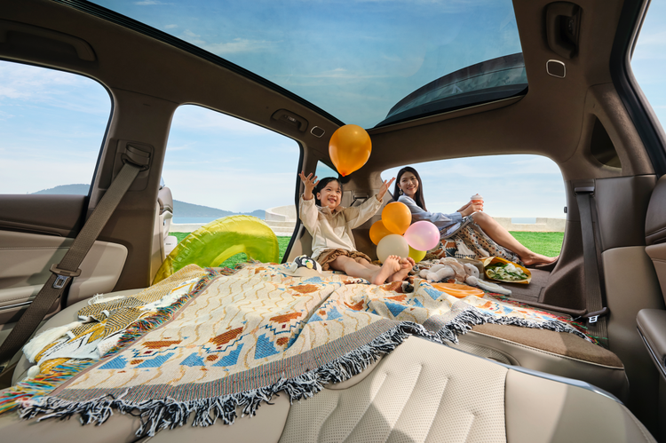 空间方面,2935mm超长轴距,带来真正的后排平权体验——头部空间1013mm,腿部空间达1035mm,接近三拳余量,三人并坐也不显局促;670L超大后备厢,轻松容纳行李箱、儿童安全座椅、家乡特产,放倒后排后更可拓展至1802L,连露营装备都能整套带走。独立前备箱还能藏下随身小物,细节之处尽显贴心。