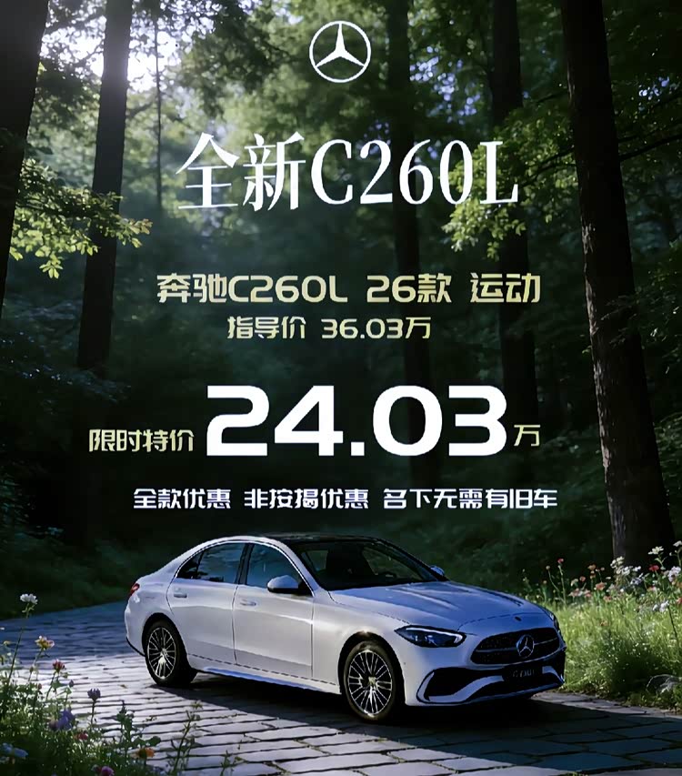 奔驰C260L,一口价24.03万。