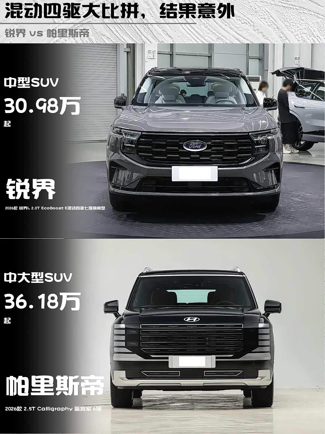 最近后台好多朋友在问30万级大空间混动SUV怎么选,今天直接拉出两台热门选手——2026款锐界L 2.0T EcoBoost E混动四驱七座旗舰型(30.98万)和2026款 帕里斯帝(参数|询价)2.5T Calligraphy鉴赏家6座(36.18万)硬核对比!作为开过两台车的车主,掏心窝子分享真实体验👇
