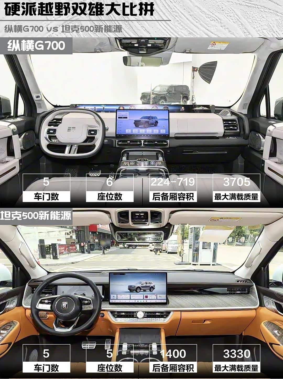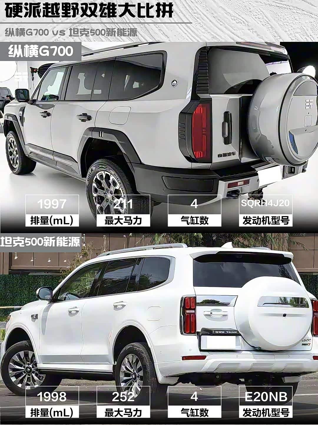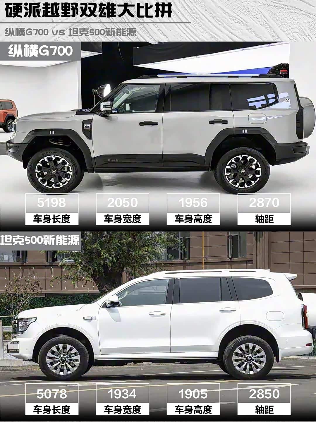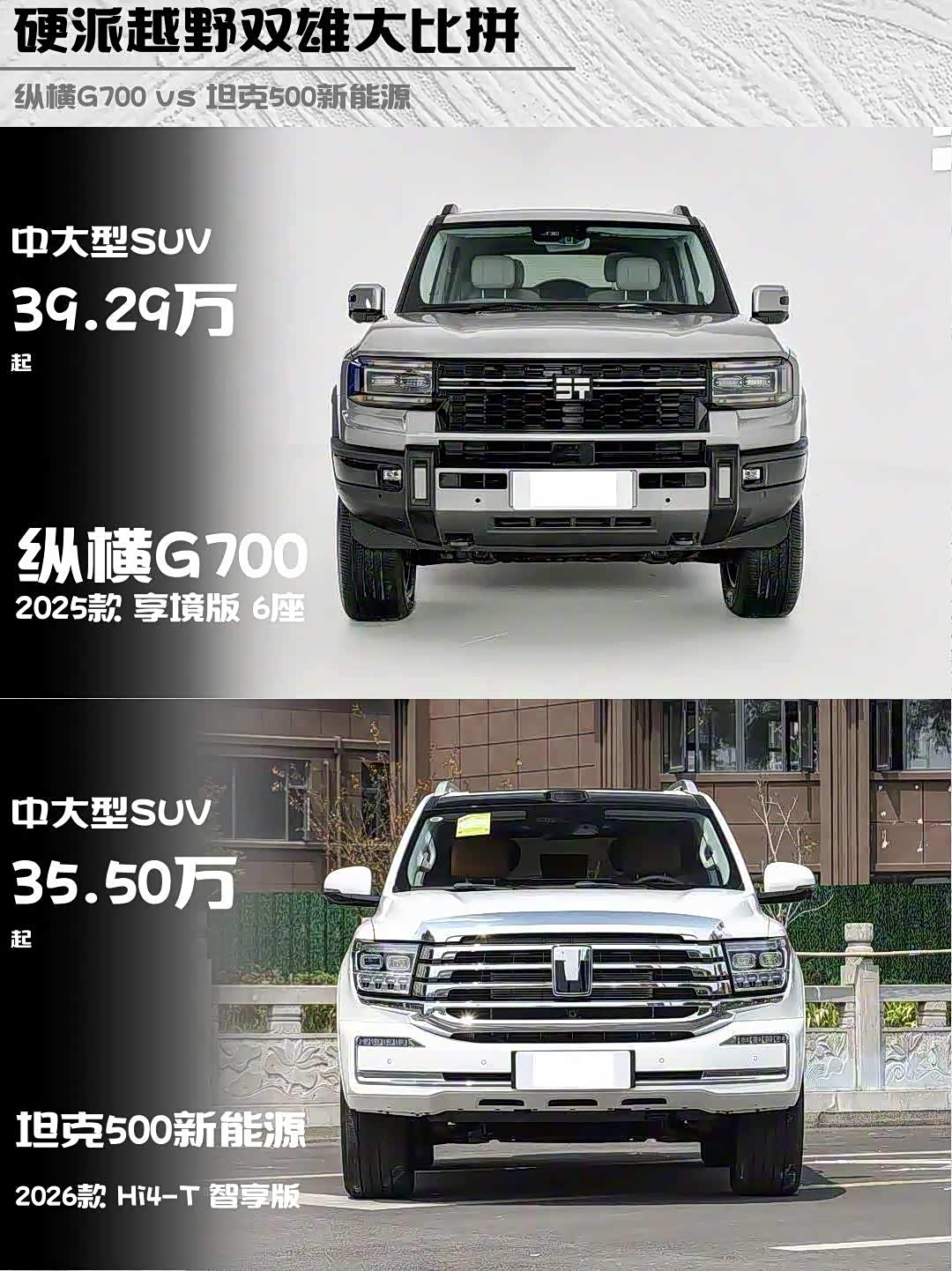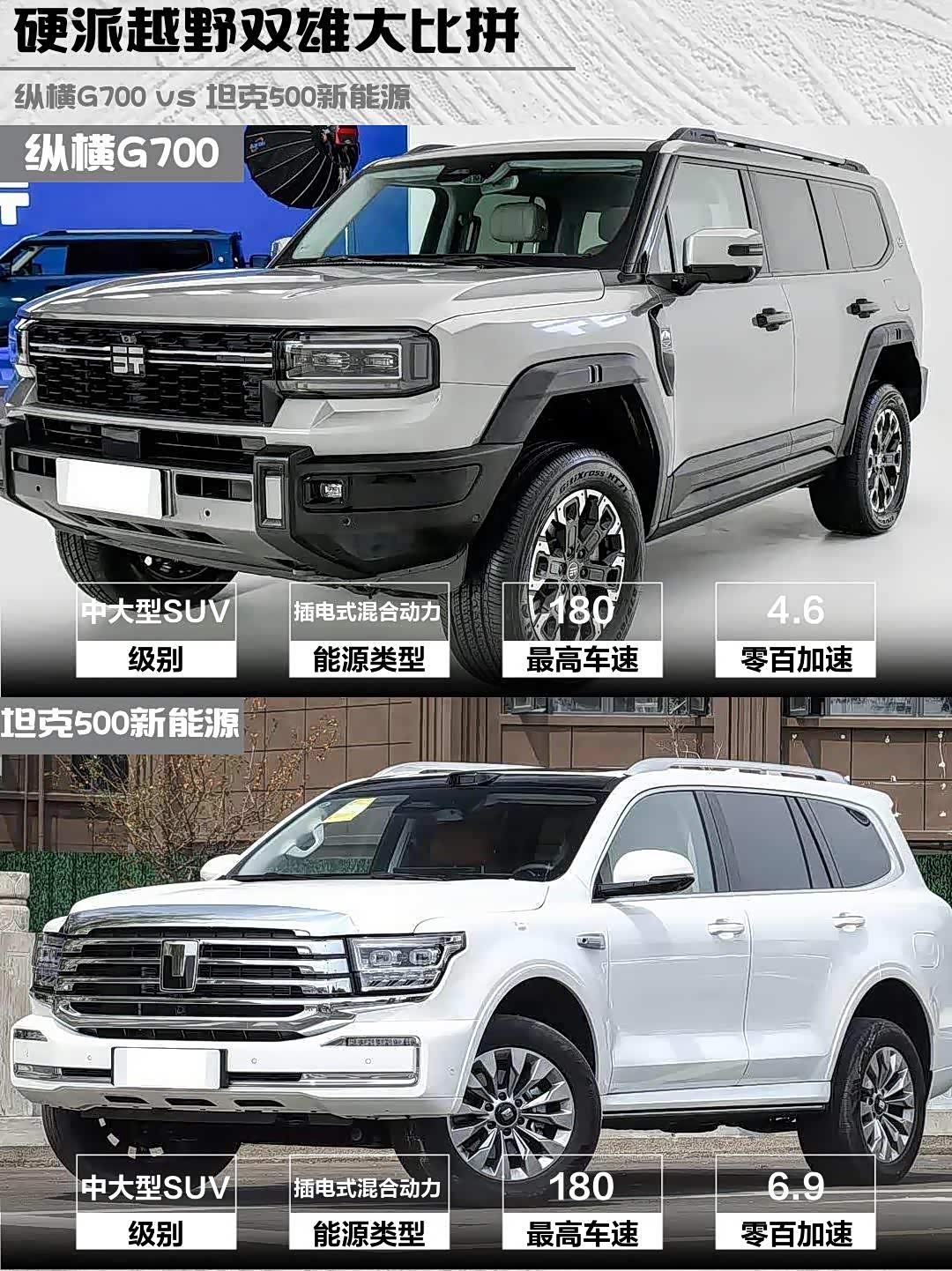 最近在选硬派新能源SUV的朋友看过来!今天深度对比两款热门车型——纵横G700 2025款享境版6座和 坦克500新能源(参数|询价)2026款Hi4-T智享版,实测干货分享给你们~ 🚗💨