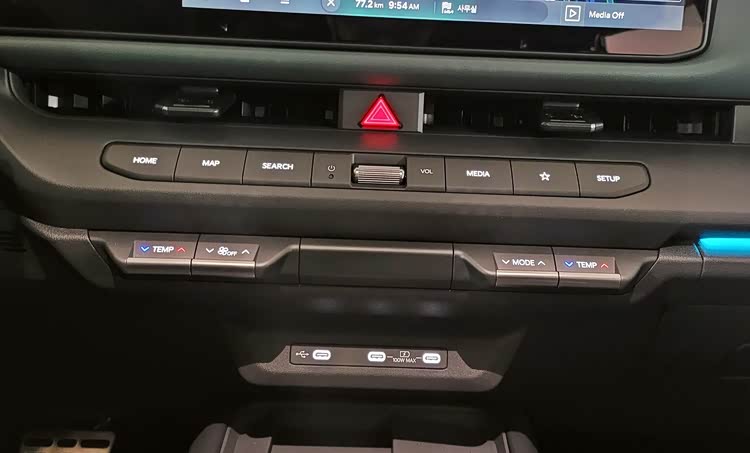 本次试驾车辆配备了前排座椅加热 / 通风、方向盘加热与全景天窗,空间通透感与乘坐舒适性拉满。尤为值得一提的是,新车在主副驾首次搭载起亚自研的震动音效座椅,播放音乐时座椅会同步传递震动,大幅提升了驾乘的氛围感与体验感。
