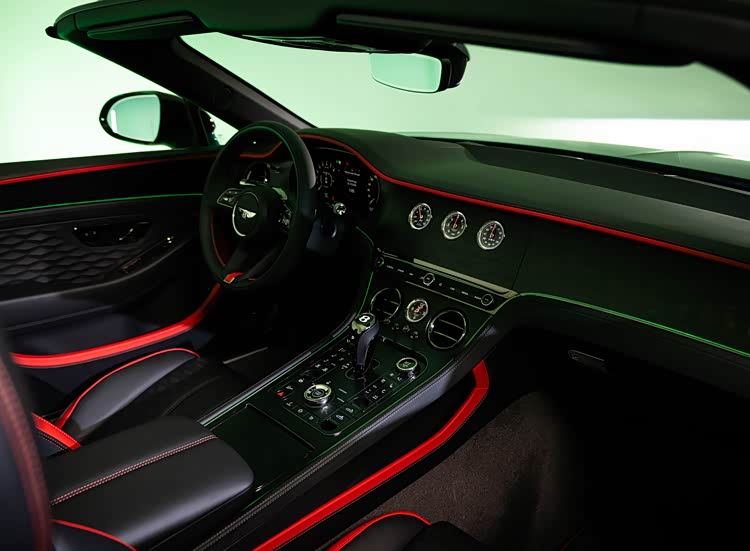 车身侧面的造型也没有什么变动,欧陆GT S是双门溜背式造型,欧陆GTC S则是敞篷造型,腰线采用了分段式设计,点缀出了车身侧面的层次感;轮眉和侧裙部分设计有宽体套件,凸显了力量感;轮毂则是22英寸多幅式造型,风格足够大气。