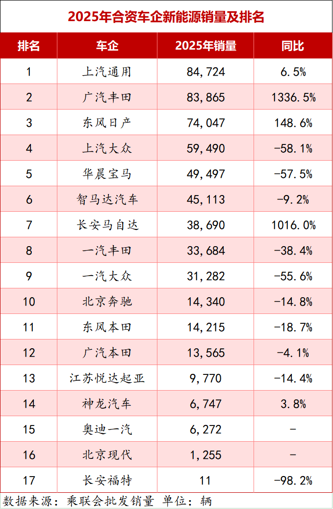 乘联会数据显示,主流合资品牌新能源渗透率仅为6.3%,较2024年的6.7%微降0.4个百分点,大众、本田等头部企业深陷增速瓶颈,不少品牌在电动化转型中折戟沉沙。在此背景下,广汽丰田逆势突围,成为合资阵营新能源转型的标杆,交出了一份含金量十足的成绩单。