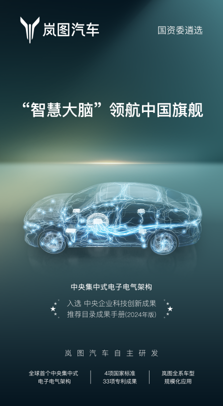 2026年1月30日,国务院国资委发布《中央企业科技创新成果推荐目录成果手册(2024年版)》,其中岚图汽车自主研发的中央集中式电子电气架构平台成功入选,成为国家层面重点推荐的前沿科技创新成果之一,标志着岚图在智能电动汽车电子电气架构领域的技术实力和领先地位获得国家级权威认可,并给予推荐。