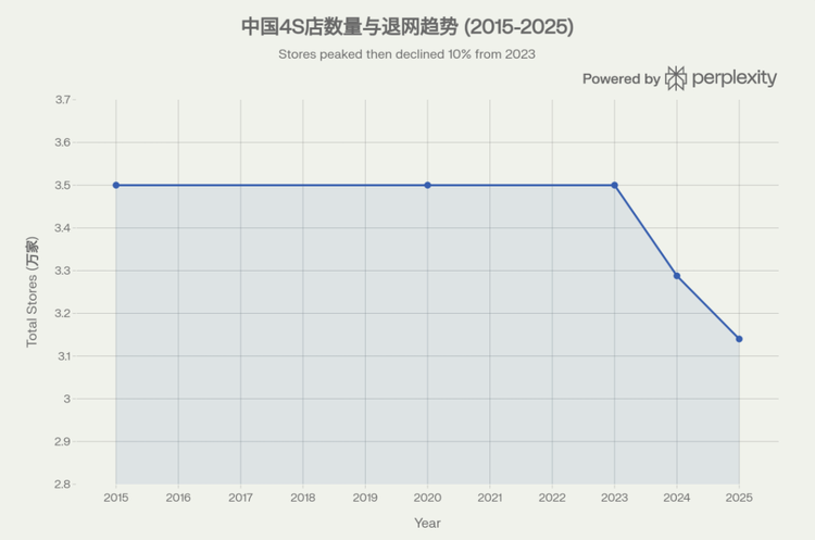 到了2025年上半年,4S店数量从3.2万家降到3.14万家,半年净减650家,全年预计退网接近3000家。中国汽车流通协会甚至直接用了“今年预计有1500家4S店倒闭”这样的表述。