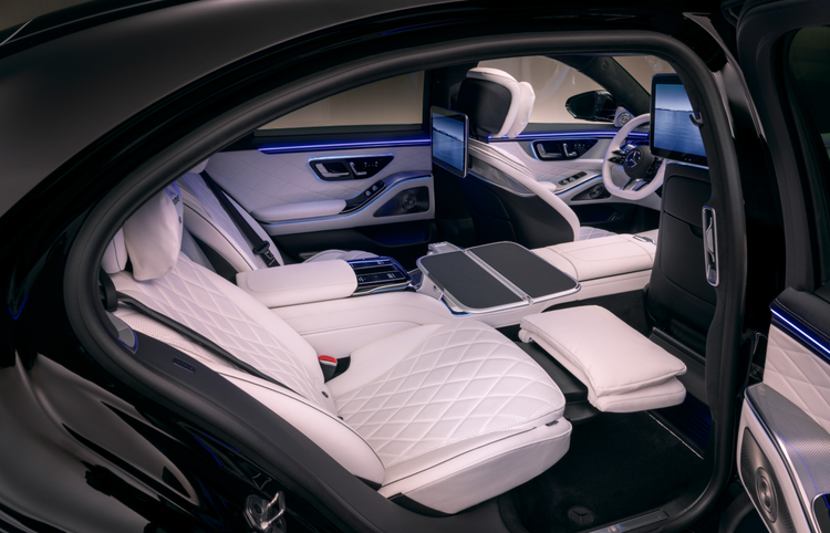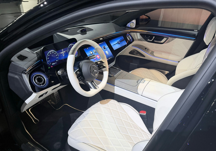 车身尺寸将加长14mm,达到5304mm(长轴版本)。车身侧面延续了动感的行政姿态,弹出式隐藏门把手也没有缺席,不过将换装20/21英寸多种全新造型的轮毂,加之“Mercedes-Benz”迎宾光毯,以及黑色星空、绿砾石银等个性化高定车漆,尊贵感油然而生。而尾灯内同样加入3枚“三叉星徽”元素,与前大灯相呼应,同时还将针对尾部镀铬饰条进行调整,后包围处加入扩散器造型。