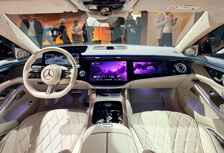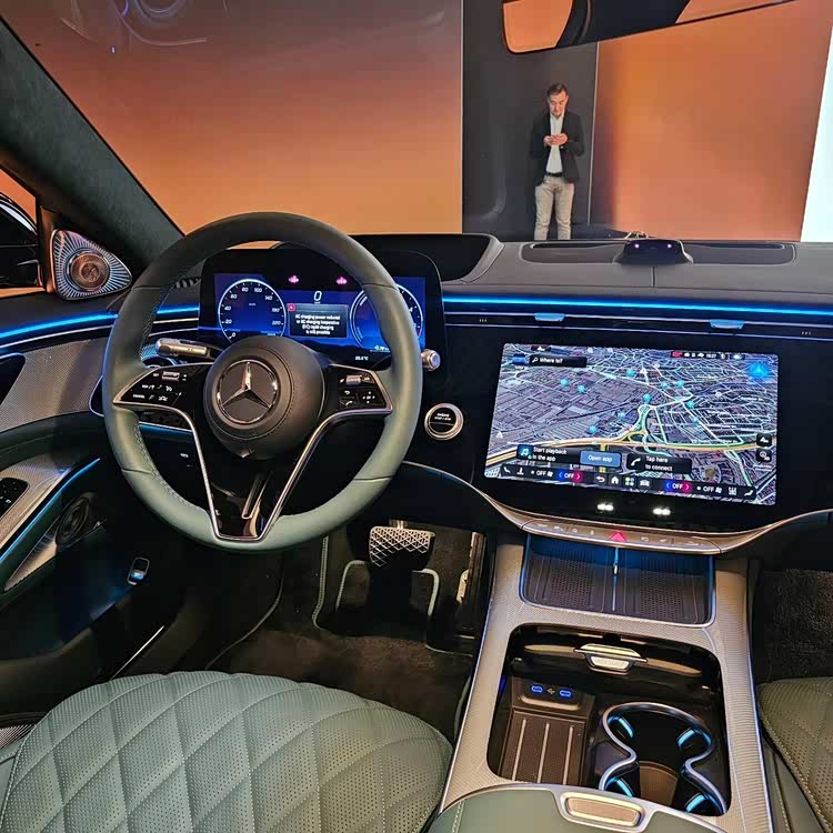 内饰取消纵置中控屏,转而采用家族最新14.4英寸中控屏+12.3英寸副驾娱乐屏组合成的MBUX超级屏,并搭载奔驰最新的MB.OS架构,拥有AI奔驰虚拟助手、沉浸式3D导航等,加之AR-HUD抬头显示,更具科技氛围。同时全车升级27个传感器,支持城区/高速领航辅助驾驶、车位到车位辅助驾驶以及智能辅助泊车融合后轮主动转向技术。