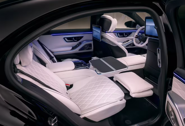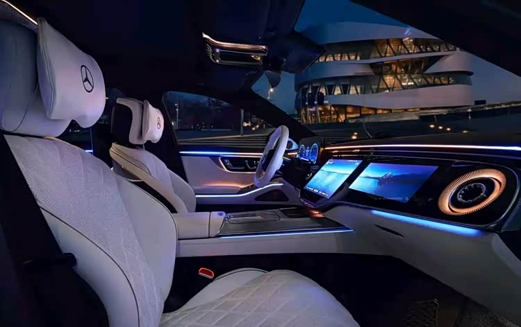 配置上还有不少提升,比如前排座椅有6种按摩模式,首次加入了加热安全带,冬天能升温到44摄氏度。后排娱乐系统升级成了双13.1英寸大屏,还配了独立遥控器。车机搭载了最新的MB.OS架构,虚拟助手多了新形象,沉浸式导航能把辅助驾驶视图和导航路线融合在一起,交互更流畅。