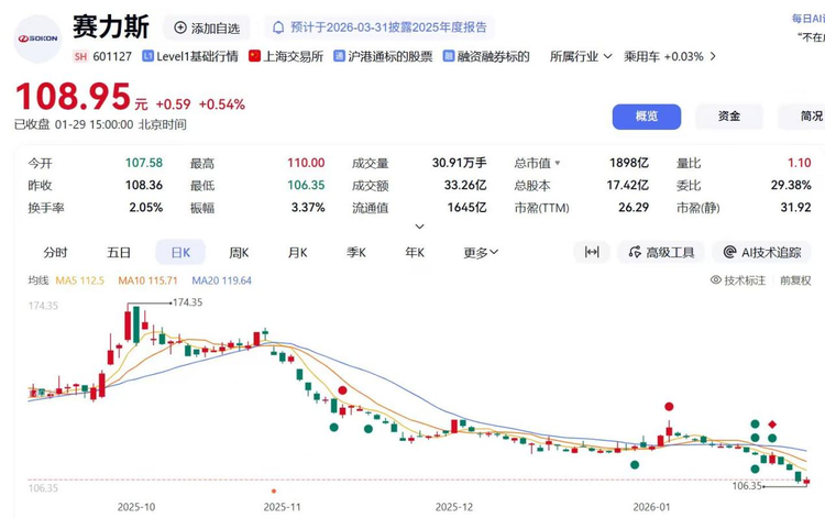 华为的光环“罩住”了很多品牌,问界是非常有代表意义的一个。凭借华为光环一路高歌,品牌发布以来累计交付新车已经超97万辆,问界的销量值得肯定。而让不少人意外的是,即便2025全年累计交付新车突破42万辆,在高端新能源市场上依旧处于领跑地位,但其股价却在短期内暴跌四成。