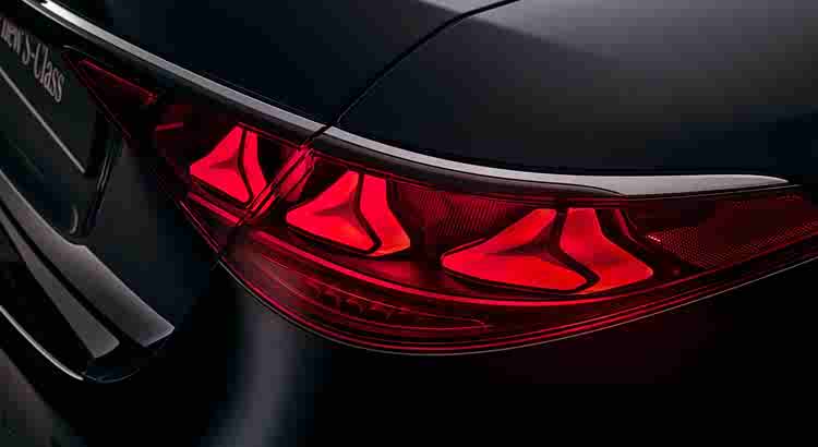 车尾部分,S级也用上了已经在E级上出现过的星形LED尾灯。不过,作为旗舰车型,S级每侧尾灯由三个发光单元组成,而E级则只有两个——这就是所谓的“级别差距”。