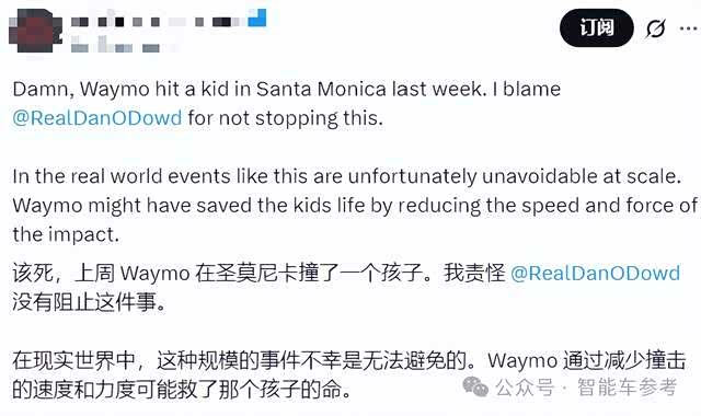 Waymo撞倒儿童,称人类驾驶更严重