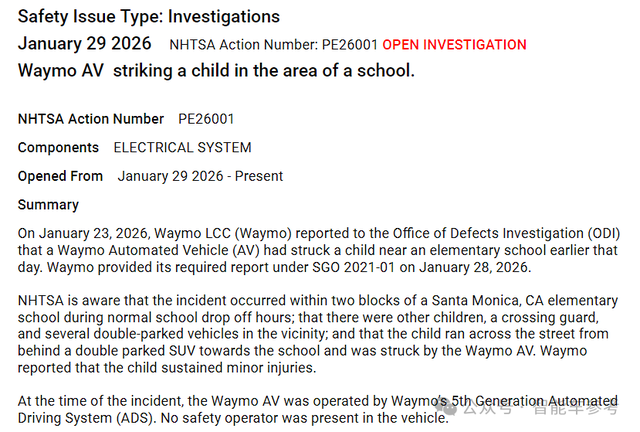 NHTSA目前已经展开了初步评估,调查在小学附近、接送时段时,Waymo遇到未成年行人或其他潜在弱势道路使用者,是否会采取适当的谨慎措施。