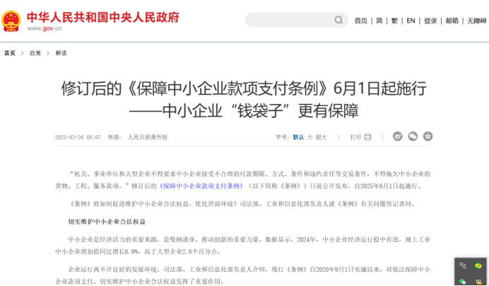 事实:2025年6月1日,国务院颁布修订的《保障中小企业款项支付条例》正式落地实施,明确要求大型企业在与中小企业开展采购业务时,账期不得超过60天。6月10日晚间至11日,一汽、东风、广汽、赛力斯、吉利、长安、比亚迪、奇瑞、小鹏、小米、长城、零跑、上汽、理想、北汽、蔚来、江汽等17家汽车企业公开承诺,将供应商支付账期统一至60天内。