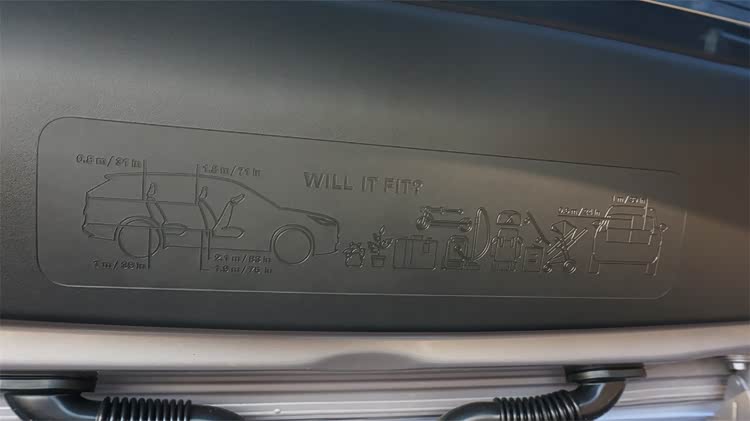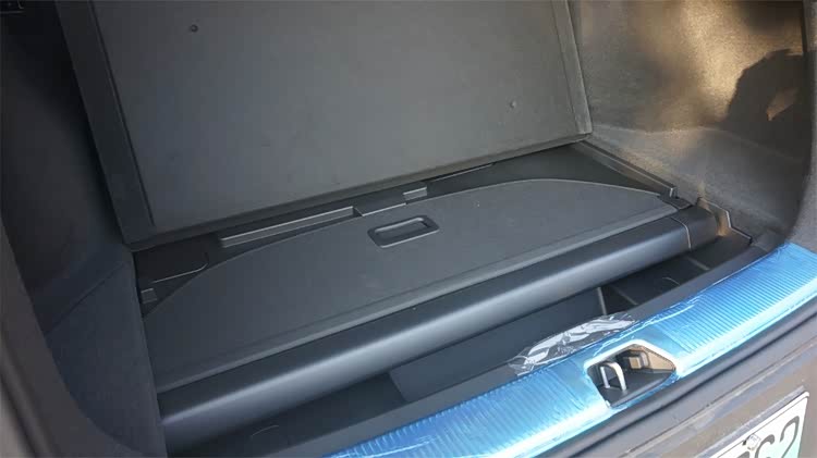尾箱容积不算大,只有408L,我觉得主要的原因在于地台过高,让原本内部很规整的空间被占用了不少。不过尾厢的细节却很富有心思:遮物帘不但得到了保留,而且地台下方的储物格里为遮物帘留下了专门的收纳位置,启用遮物帘之后留下的储物格空间也不少;尾门的内壁上留下了一张指示图,用于标识尾厢内部的长宽高等各项数据,甚至还绘制出了各种不同类型的行李模板,给用户进行直观比对,很典型的“宜家风格”。