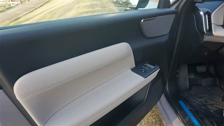 皮革面板的中央空当留作为车门拉手,但是位置过于靠后,每次下车时都要刻意缩着手推门,不好发力。