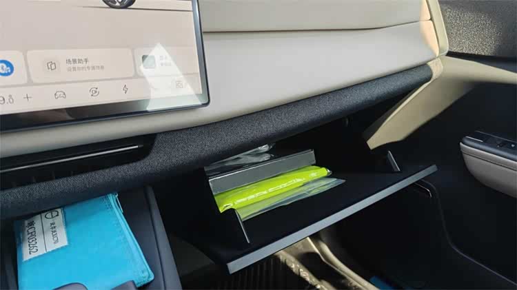 这种追求视觉效果,而牺牲了交互便利性的设计,也出现在了一些别的地方:顶棚部分除了E-CALL和双闪之外,阅读灯改成了欧系车很喜欢用的触控表面,甚至前风挡加热也被塞了进来;手套箱完全没有外侧的物理按键,只能通过车机软开关和语音打开,等等。