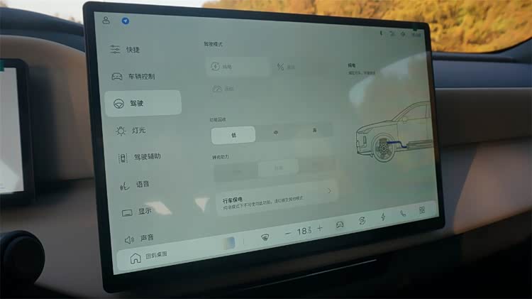 首先是转向。手感相比起以往的油车轻盈了不少,尤其是随角度的力度反馈变化没有那么明显了,回正力矩也不大、显得相对柔和了一些,所以通常情况下我更推荐标准或者运动的手感,更适合成年男性的偏好。