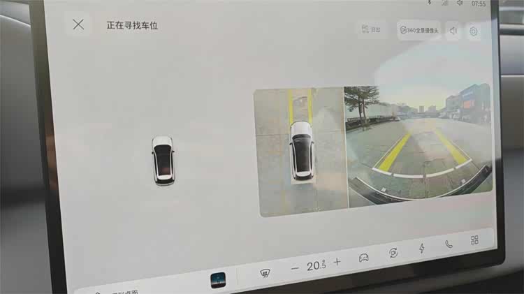 泊车方面,除了通常的自动泊车之外,也兼具了遥控泊车。功能上能够支持通常的垂直车位和侧边车位,泊入的过程也很流畅,系统上的视觉提示也很完善。不过视觉系统的识别能力有点欠佳,在一些浅色背景的环境下(譬如下图中的地砖表面)会出现无法识别车位线的问题。