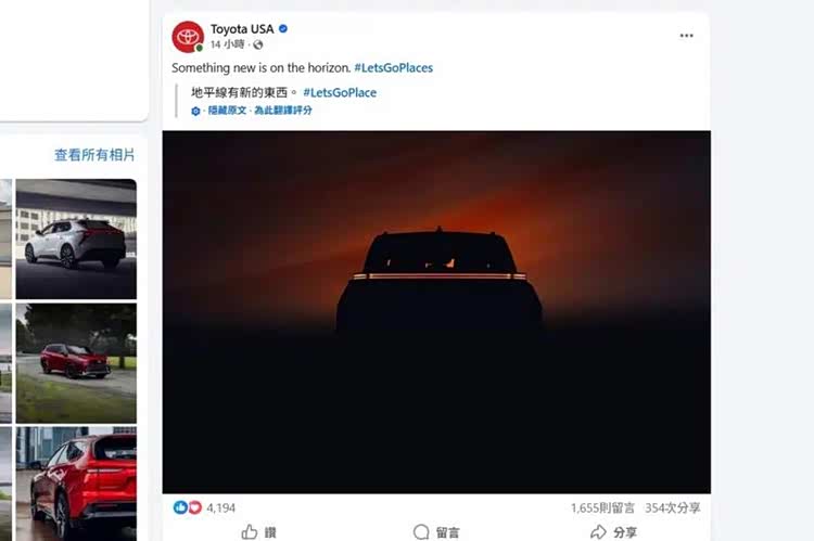 丰田在北美市场的电动车攻势一波波,昨日才刚发布与斯巴鲁合作的bZ Woodland,今日凌晨再度放出谜之车型的预告图片,预计下个月发布。都怪横贯式尾灯太泛滥,预告图第一时间让我想到的是该不会是鸿华的北美版Model C吧?!还真的不是,对比丰田过往纯电概念车,它的身份应该是全新三排座纯电SUV车,预计为LAND CRUISER Se概念车的量产车型。
